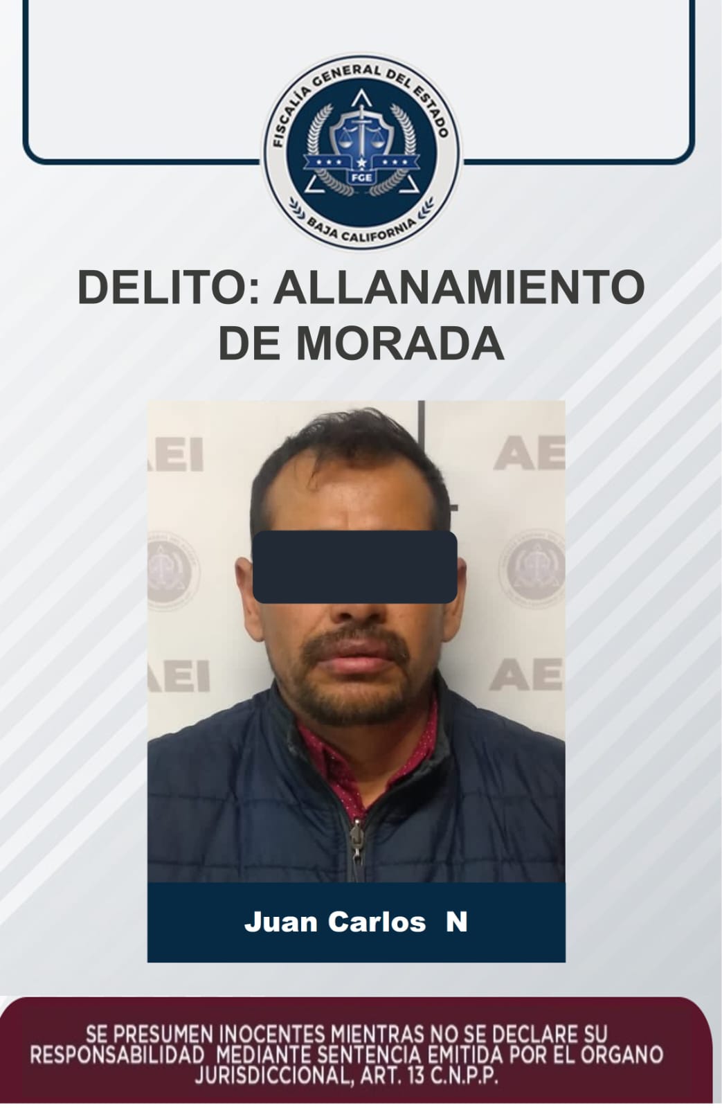 SAN QUINTÍN, B.C. La Fiscalía Regional de San Quintín, obtuvo auto de vinculación a proceso en contra de Juan Carlos “N”, por su presunta responsabilidad en el delito de allanamiento de morada, cometido en la delegación de Camalú.