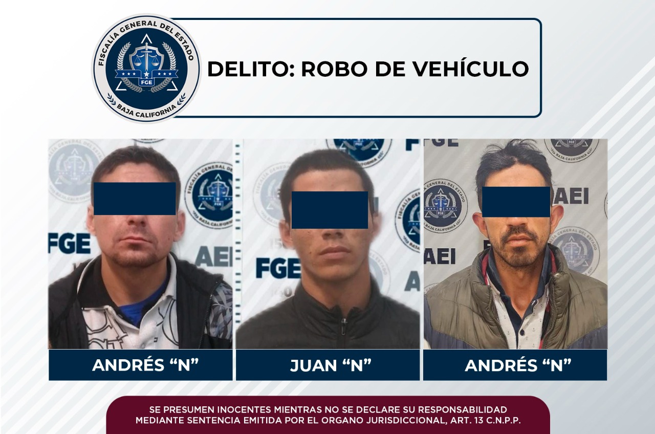 por robo de vehículo tres sujetos fueron aprehendidos por Agentes de la Fiscalía General Del Estado