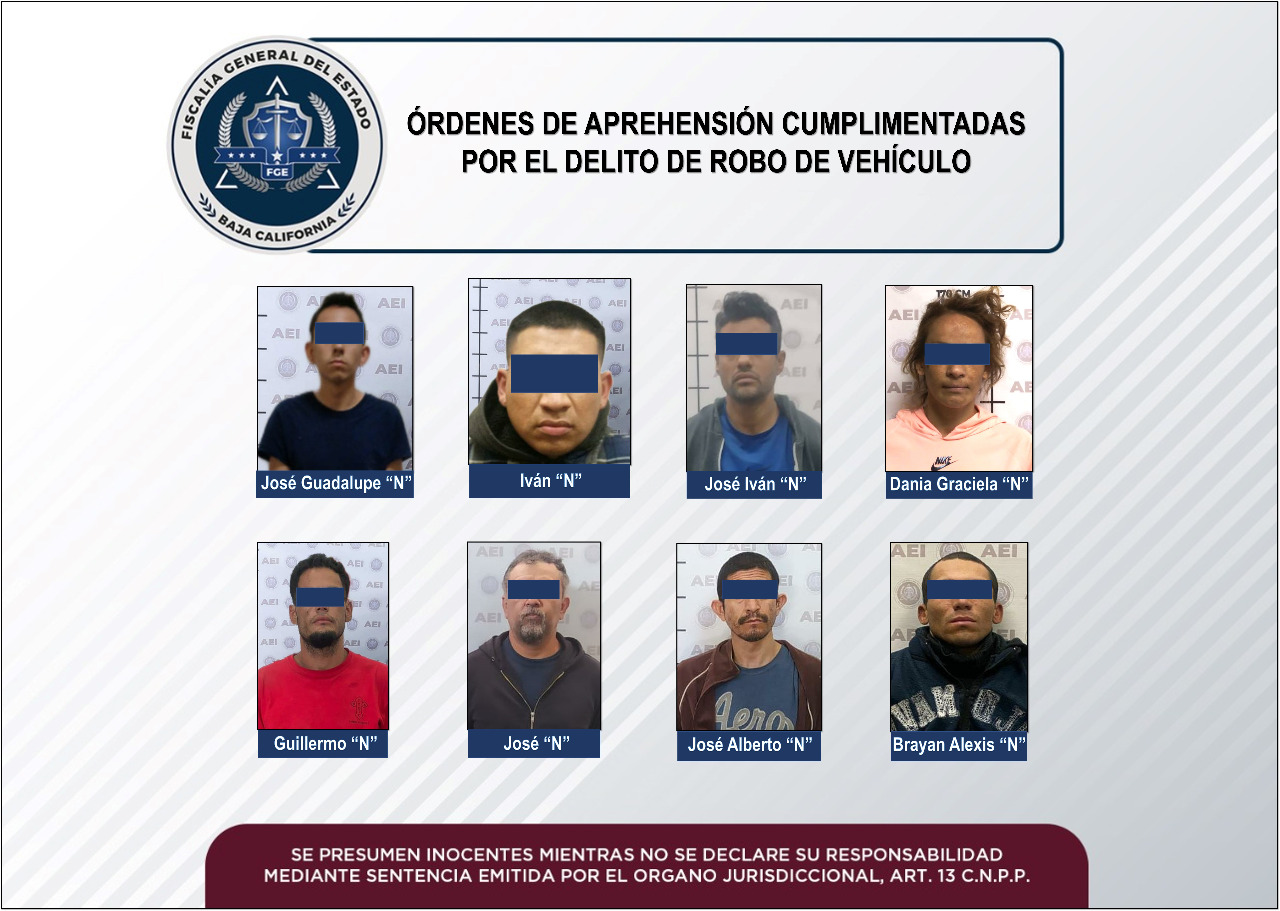 MEXICALI, B.C. Elementos de la Fiscalía Regional de Mexicali realizaron un despliegue policíaco por distintos puntos de la ciudad, logando la captura de ocho individuos requeridos por la justicia por contar un mandato judicial en su contra por el delito de robo en sus diferentes modalidades.
