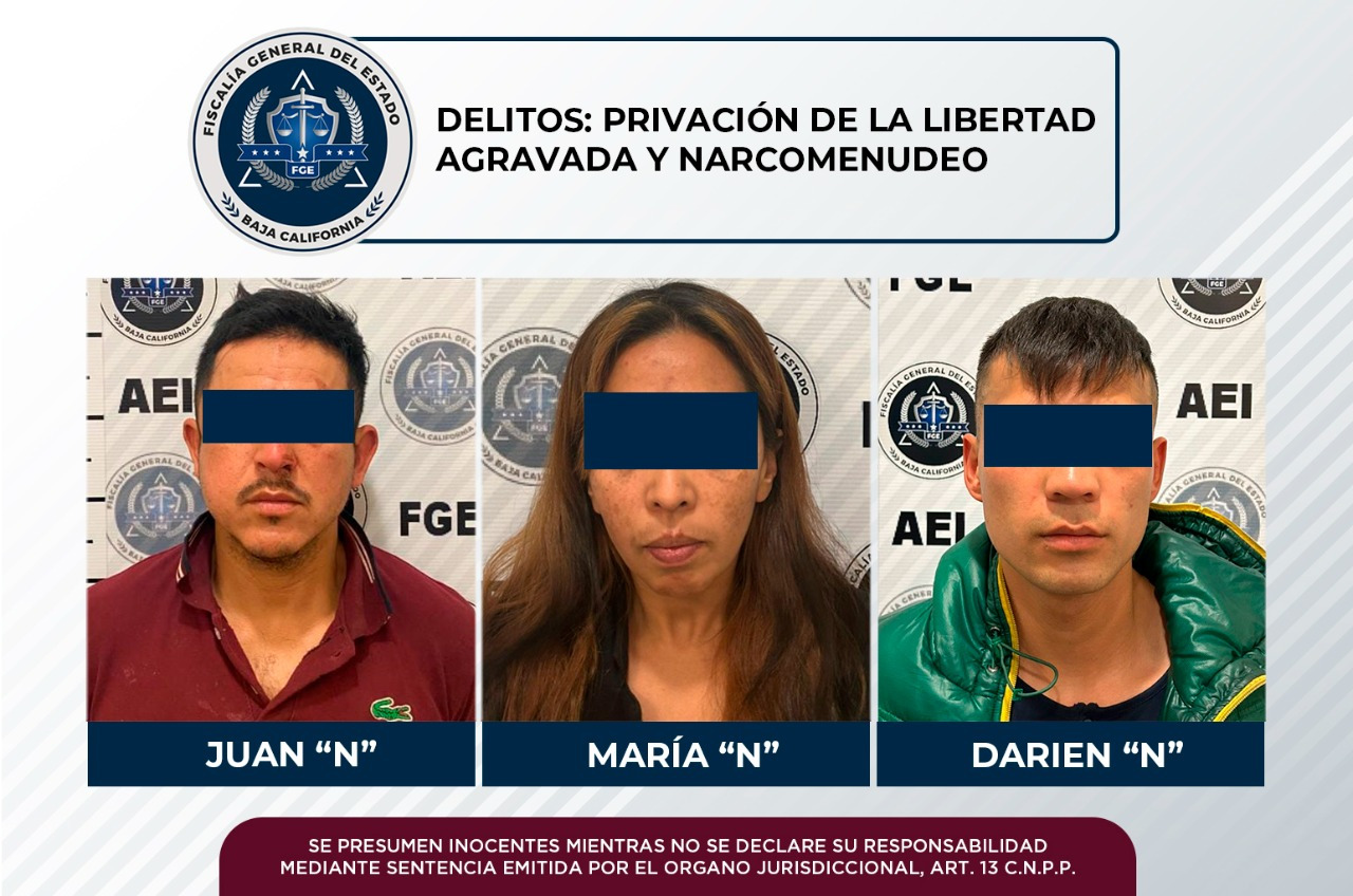 TIJUANA, B.C. La Fiscalía General del Estado (FGE), a través de agentes aprehensores de la Agencia Estatal de Investigación (AEI), dieron cumplimiento a tres órdenes de aprehensión otorgadas por jueces de control en contra de tres personas que pretendían evadir la justicia.
