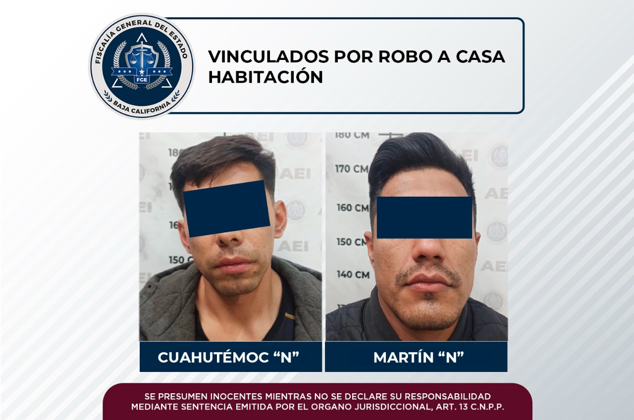 MEXICALI, B.C. La Fiscalía Regional de Mexicali, a través de la Unidad de Investigación con Detenidos Poniente, logró la vinculación de dos imputados por el delito de robo calificado a casa habitación.