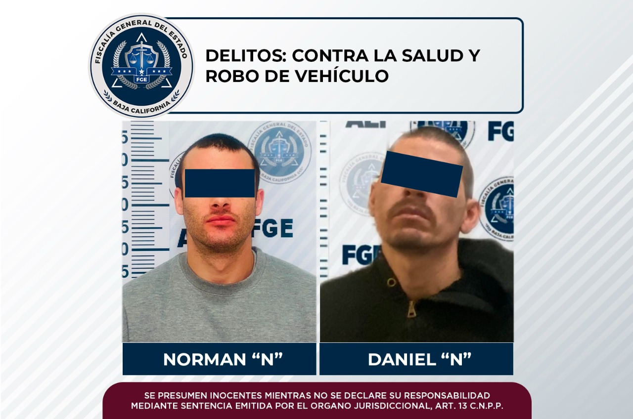 TIJUANA, B.C. Como resultado de acciones de investigación, agentes de la Fiscalía General del Estado lograron ubicar y posteriormente cumplimentar orden de aprehensión a dos hombres que en asuntos distintos están señalados de narcomenudeo y robo de vehículo.