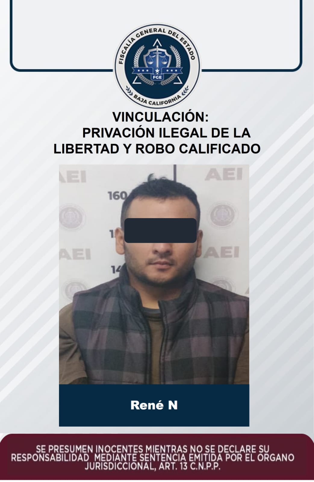 Tras valorar los datos expuestos durante la audiencia celebrada el 24 de diciembre de 2022, el Juez vinculó a proceso a René "N", fijó como medida cautelar prisión preventiva oficiosa y determinó 2 meses como plazo para el cierre de la investigación complementaria.