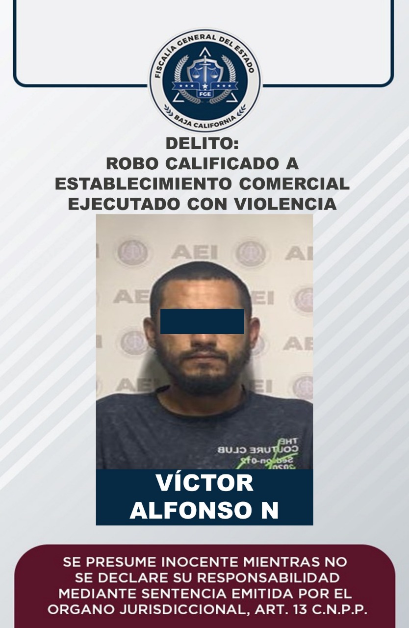ENSENADA, B.C. Por el robo con violencia cometido recientemente en una tienda Oxxo de la colonia Piedras Negras, la Fiscalía General del Estado cumplimentó una orden de aprehensión contra Víctor Alfonso “N”.