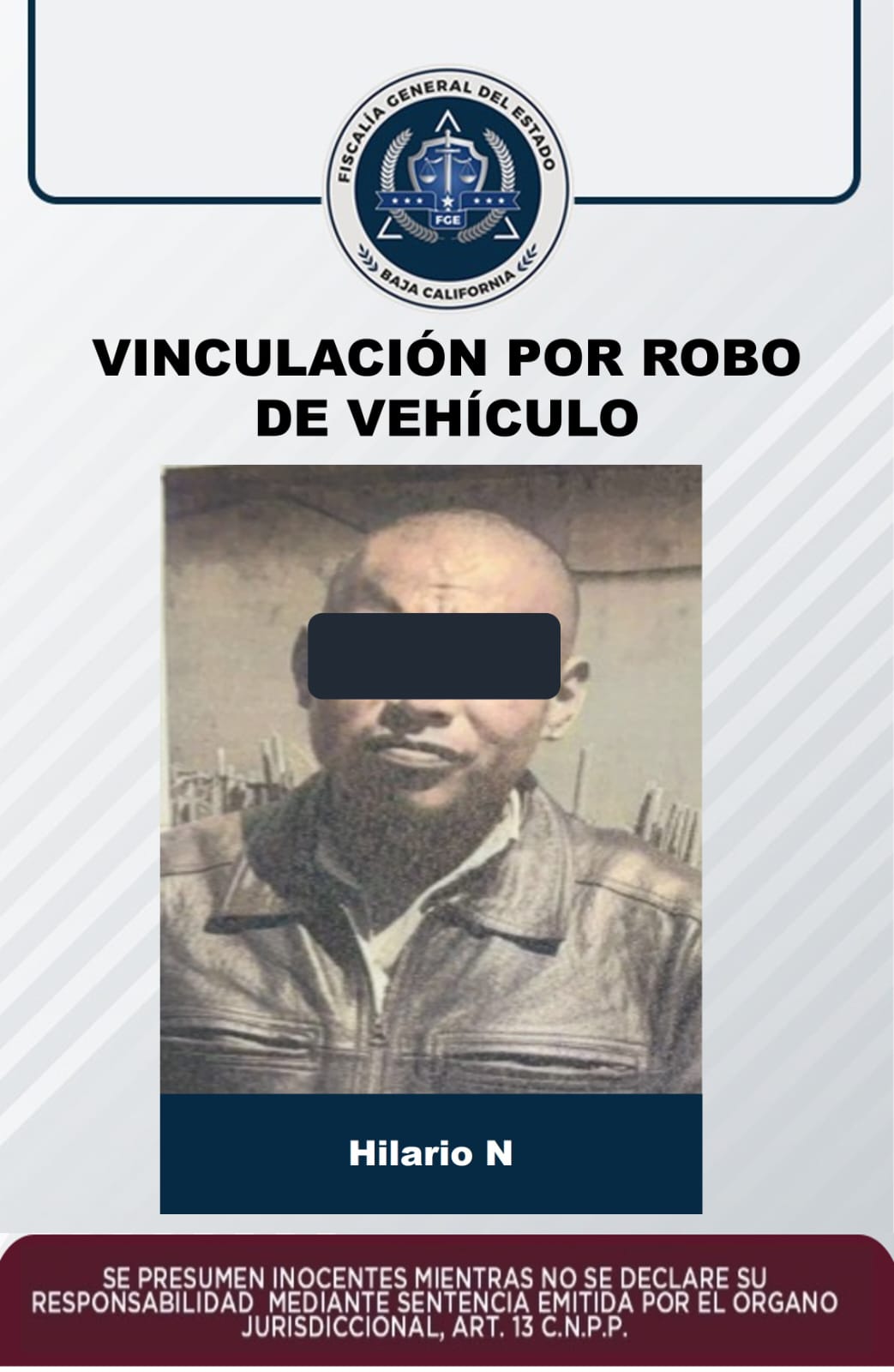 SAN QUINTÍN, B.C. La Fiscalía Regional de San Quintín, logró vinculación a proceso contra un sujeto señalado como presunto responsable de la comisión de robo de vehículo, en la colonia Benito García.
