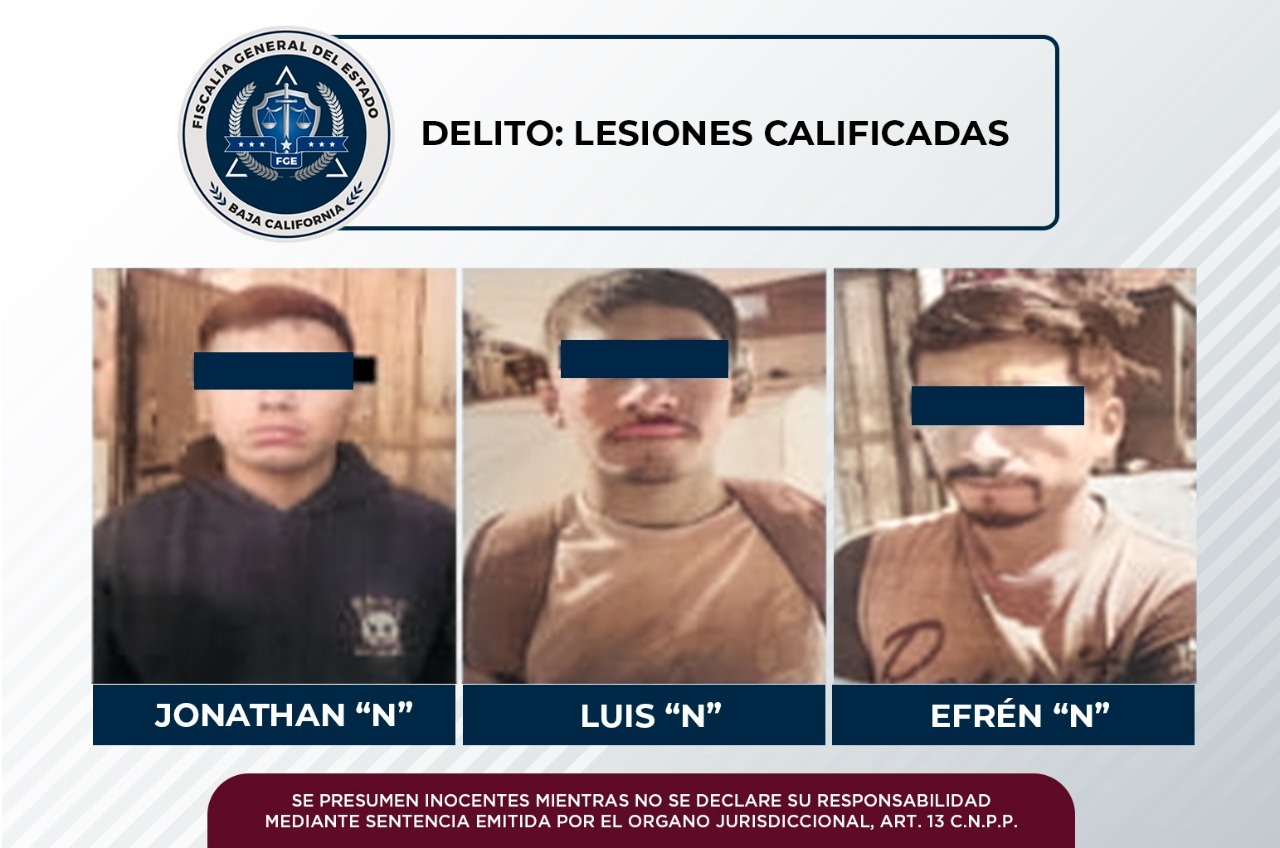 PLAYAS DE ROSARITO, B.C. Tras la presentación de datos de prueba, la Fiscalía Regional de Playas de Rosarito, logró la vinculación a proceso de tres hombres, por el delito de lesiones calificadas.