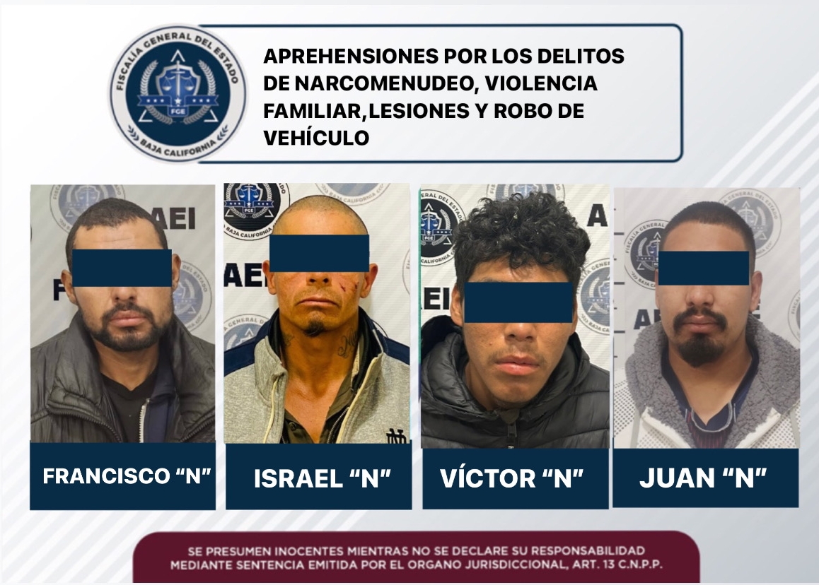 TIJUANA, B.C. Agentes estatales de investigación, pertenecientes a la Fiscalía General de Baja California, cumplimentaron cuatro órdenes de aprehensión en contra de imputados que son requeridos por jueces penales para seguir con el proceso en su contra.