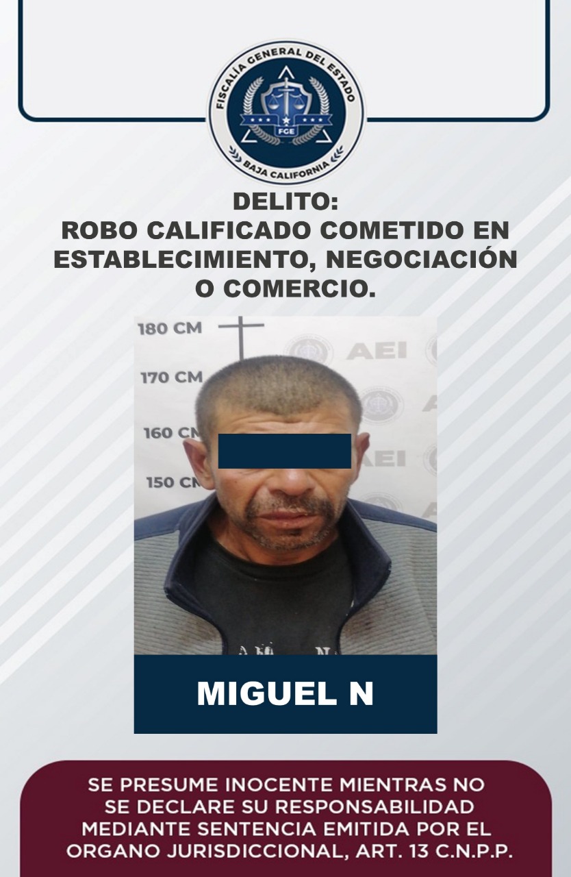 ENSENADA, B.C. Un hombre identificado como Miguel “N”, quedó vinculado a proceso como presunto responsable del robo ocurrido en días recientes, en un establecimiento situado en la zona centro del municipio, informó la Fiscalía Regional de Ensenada.