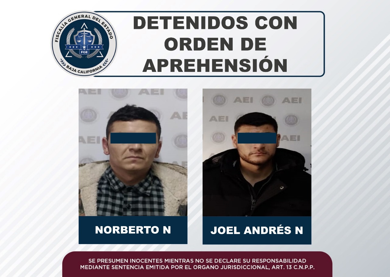 ENSENADA, B.C. 3 DE ENERO DE 2023.- La Fiscalía General del Estado cumplimentó orden de aprehensión a dos sujetos investigados por su presunta participación en ilícitos cometidos en el municipio de Ensenada, Baja California.