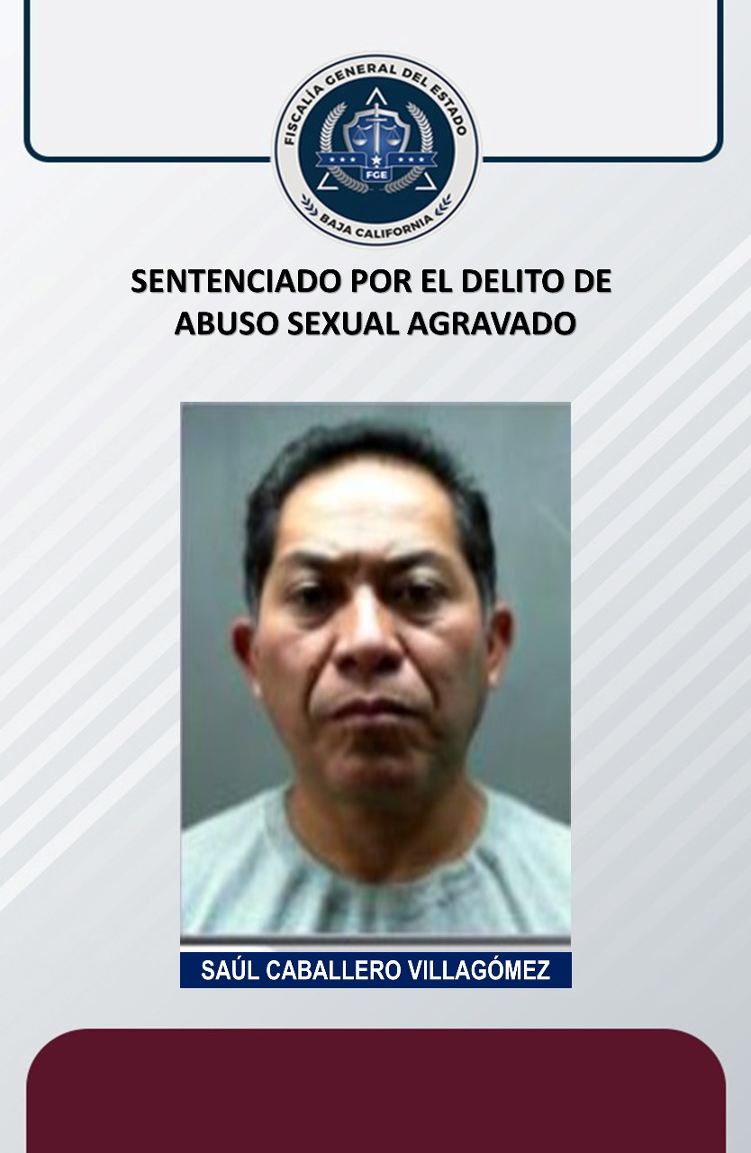 MEXICALI, B.C. La Fiscalía Regional de Mexicali, a través de la Fiscalía Especializada en Delitos Contra Mujeres Por Razón de Género, logró fallo condenatorio en contra de Saúl Caballero Villagómez, acusado del delito de abuso sexual agravado (contra menor de 14 años).
