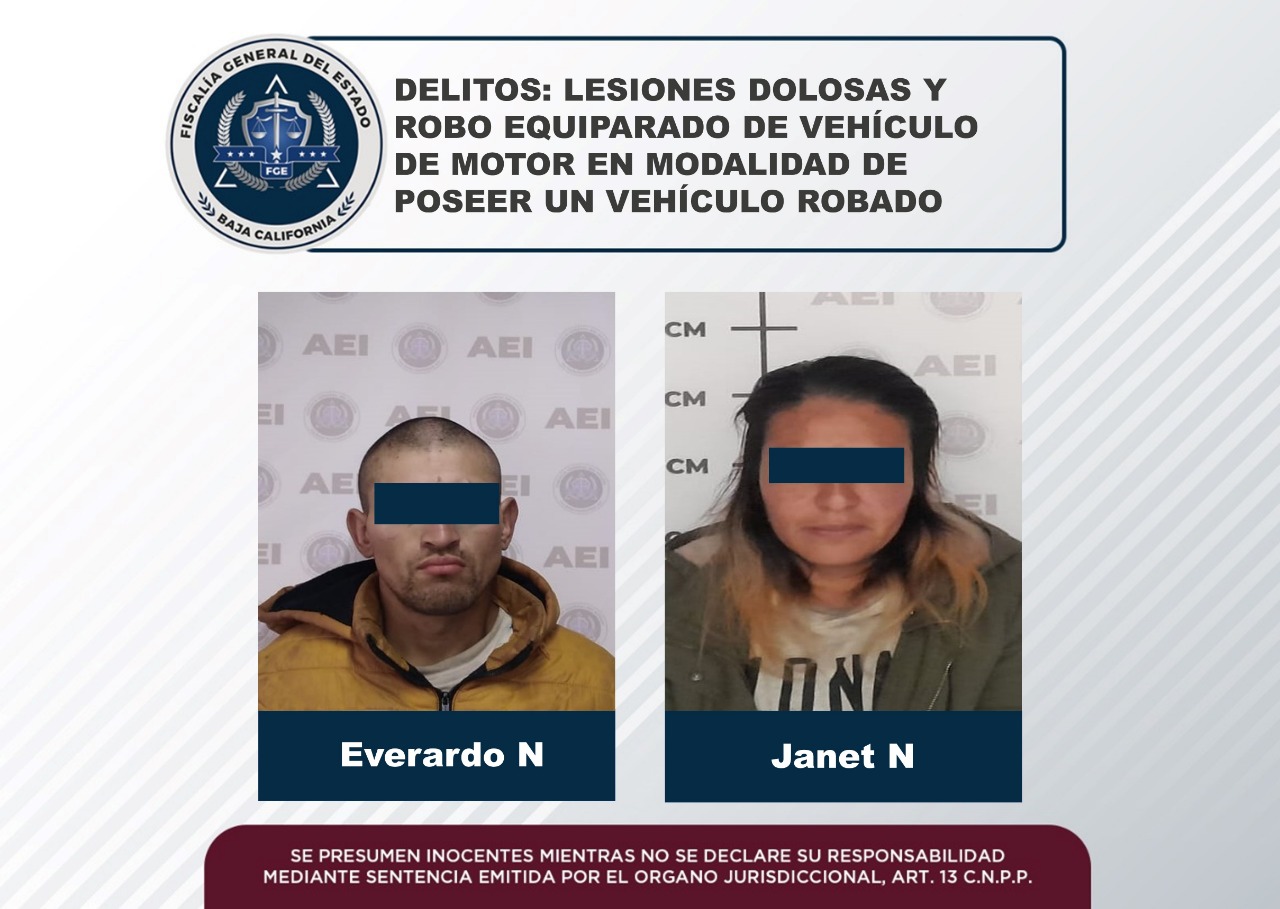ENSENADA, B.C. La Fiscalía General del Estado cumplimentó orden de aprehensión a un hombre y una mujer, que son investigados tras su presunta participación en distintos ilícitos cometidos en el municipio de Ensenada.