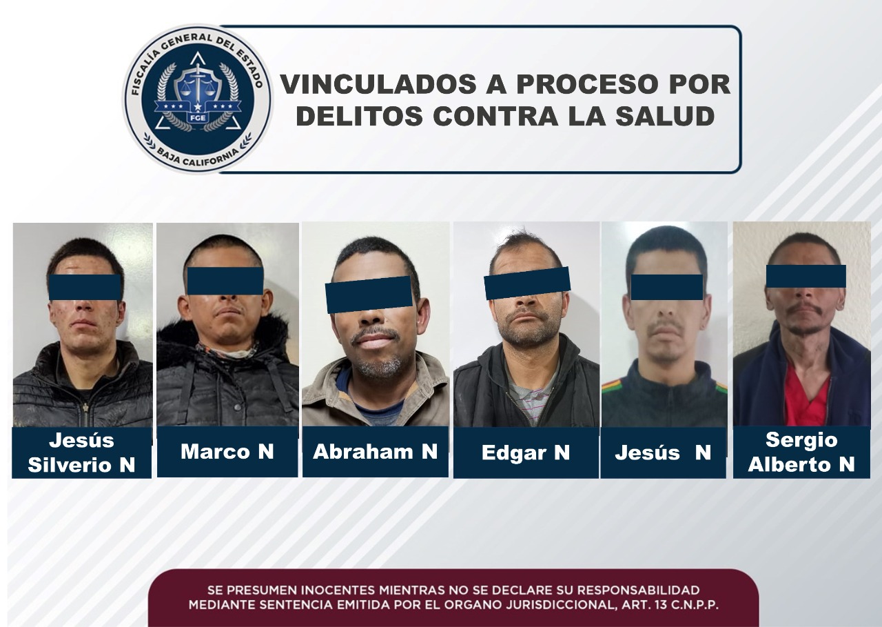 TIJUANA, B.C. Seis sujetos fueron vinculados a proceso por delitos contra la salud, y permanecerán en prisión preventiva durante la realización de procedimiento penal, informó la Fiscalía General del Estado.