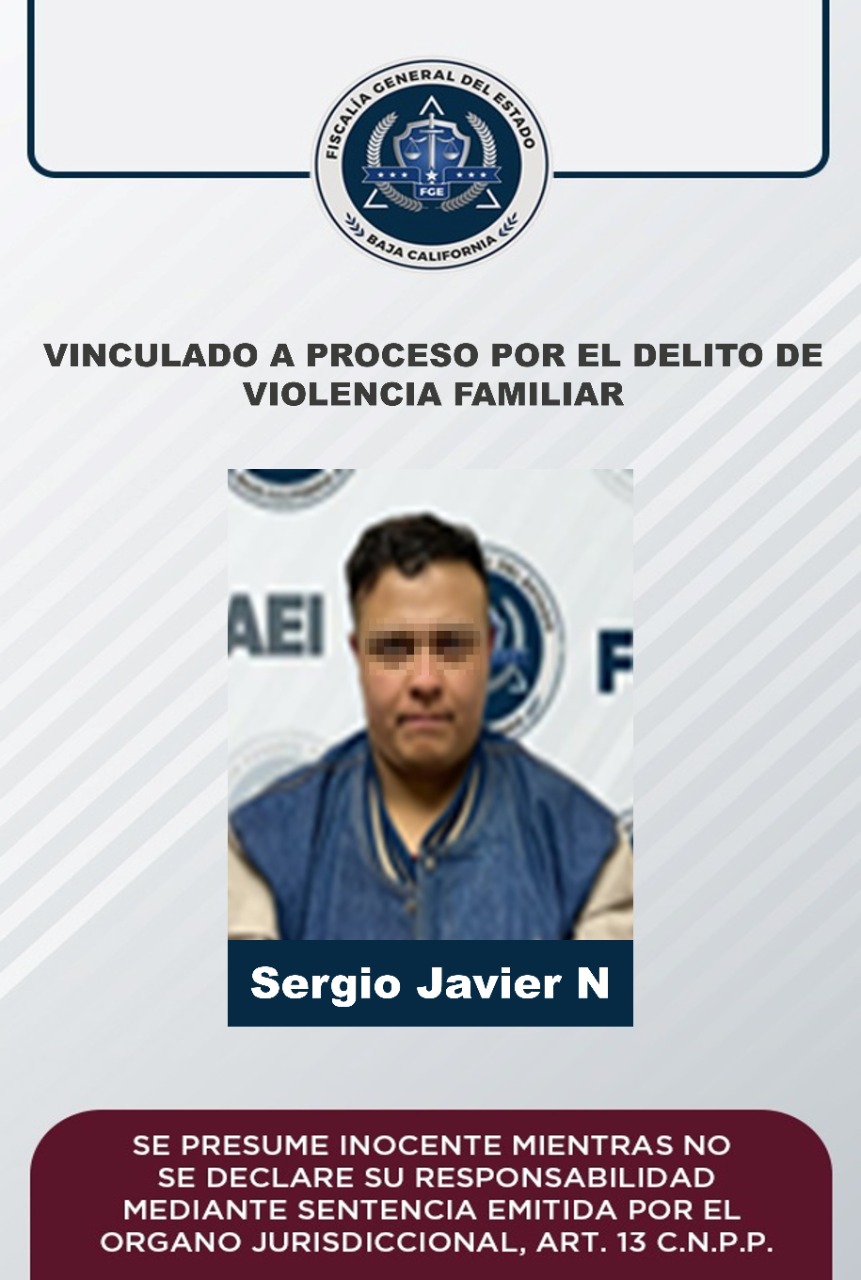 MEXICALI, B.C. La Fiscalía General del Estado logró a través de la Fiscalía Especializada en Delitos Contra la Mujer por Razón de Género, la vinculación a proceso de Sergio Javier “N” por el delito de violencia familiar.