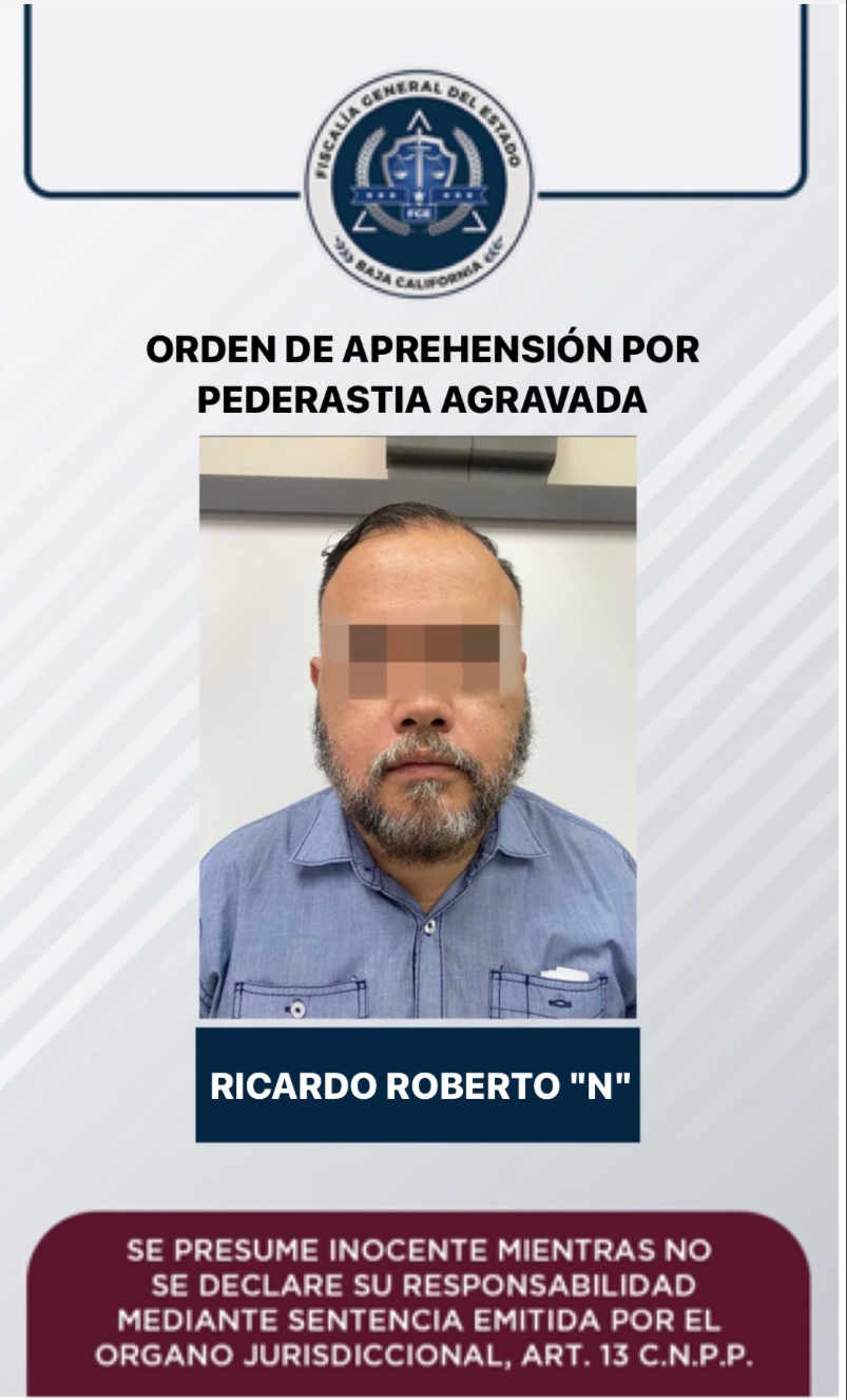Ricardo Roberto 'N' fue localizado fuera del territorio bajacaliforniano, por lo cual será trasladado a esta capital, para que sea presentado ante el juez de control que lleva el caso y se dé continuidad al proceso en su contra.