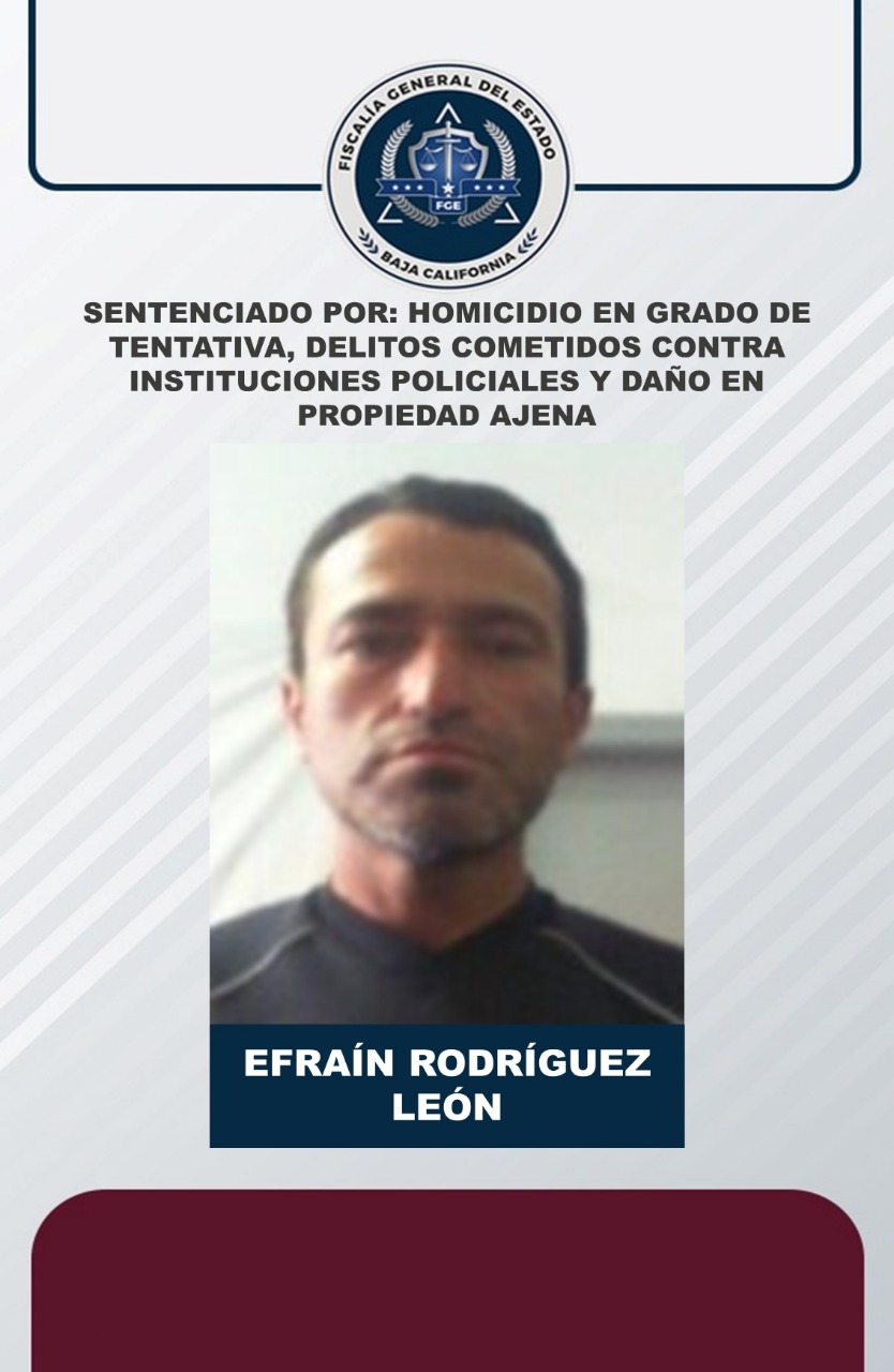 Las investigaciones realizadas por la Fiscalía Especializada en Delitos Contra la Vida demostraron la plena responsabilidad de Efraín Rodríguez León de 44 años de edad, sentenciado a 8 años de prisión sin beneficios, por homicidio en grado de tentativa, delitos cometidos contra miembros de instituciones policiales y daño en propiedad ajena.
