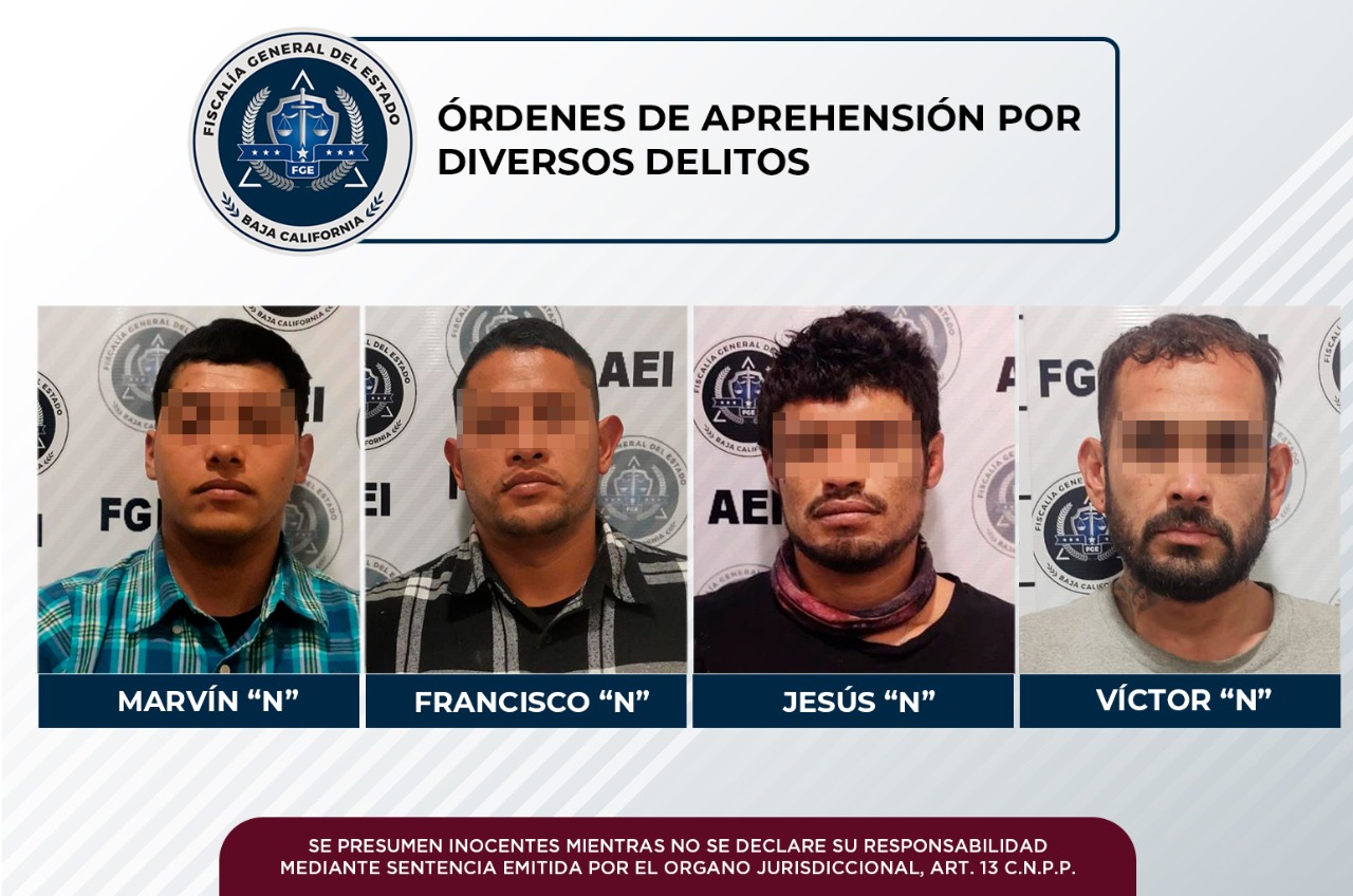TIJUANA, B.C. Por contar con mandamientos judiciales vigentes, cuatro individuos, en acciones distintas, fueron aprehendidos por elementos de la Agencia Estatal de Investigación (AEI), en diferentes colonias de la ciudad de Tijuana.