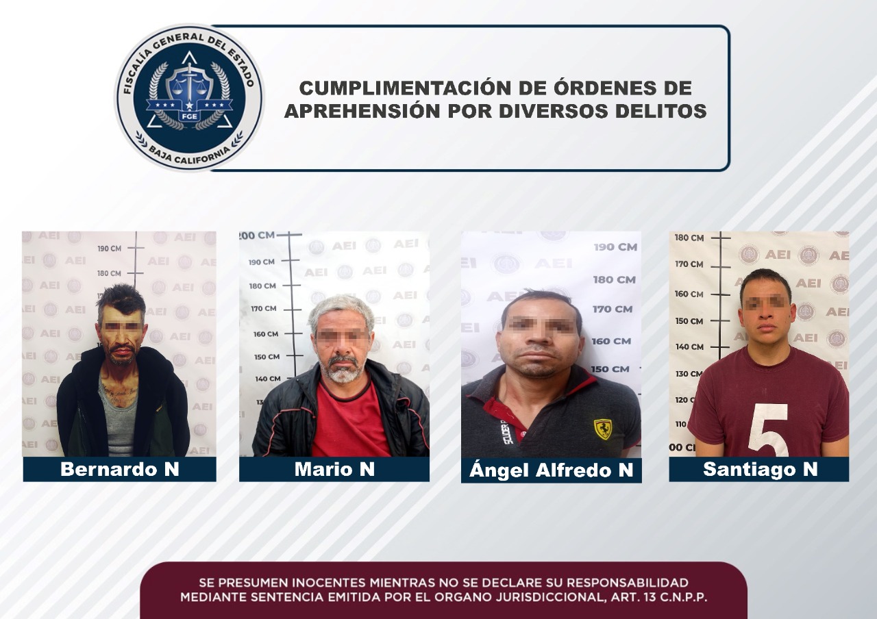 MEXICALI, B.C. Agentes Estatales de Investigación adscritos a la Fiscalía Regional de Mexicali, cumplimentaron órdenes de aprehensión en contra de cuatro individuos por distintos hechos delictivos.