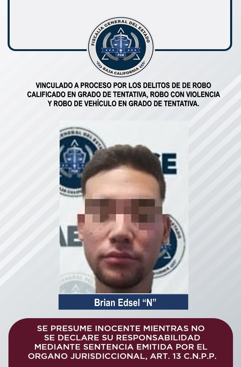 Con base a los datos de prueba y argumentos presentados por la agente del Ministerio Público al Juez de Control, este vinculó a proceso a Brian Edsel “N” por los delitos de robo calificado, por haberse cometido en establecimiento comercial abierto al público en grado de tentativa, robo con violencia y robo de vehículo en grado de tentativa.