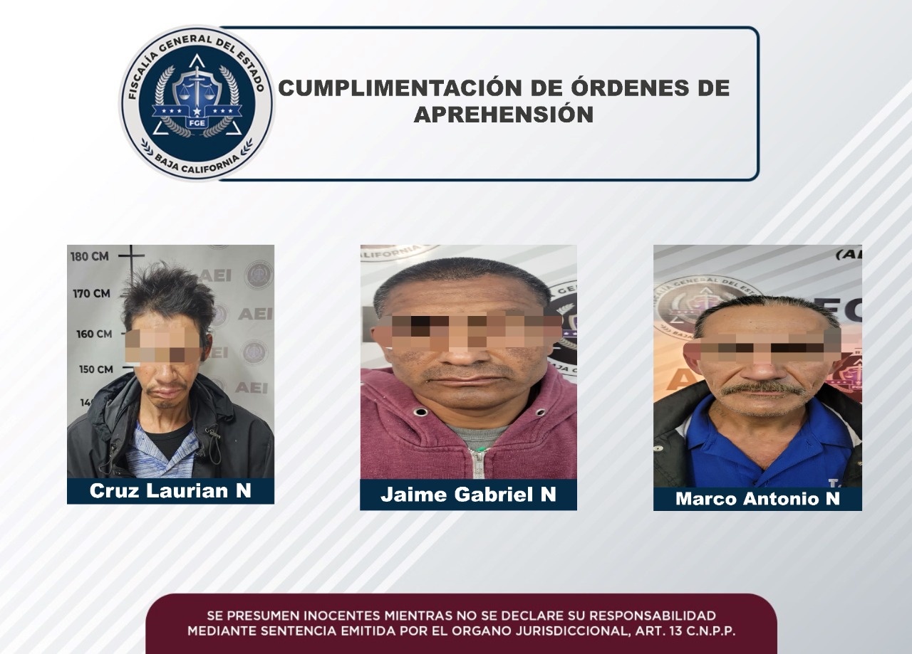 MEXICALI, B.C. Agentes Estatales de Investigación adscritos a la Fiscalía Regional de Mexicali, cumplimentaron órdenes de aprehensión en contra de tres individuos por delitos contra la salud en su modalidad de narcomenudeo, en su variante de posesión simple del psicotrópico denominado metanfetamina.