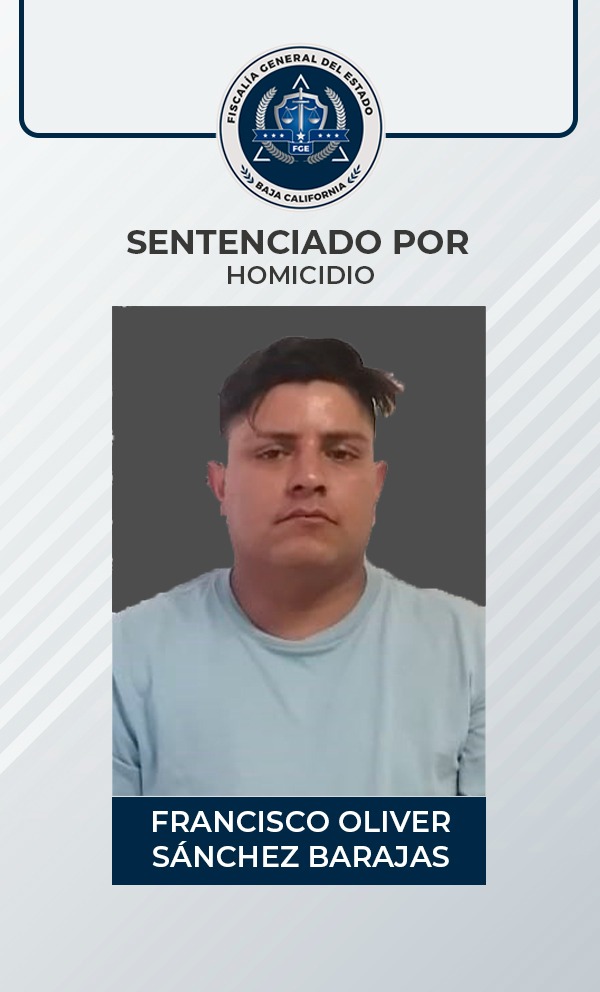 MEXICALI, B.C. La Fiscalía General del Estado (FGE) a través de la Fiscalía Especializada en Delitos Contra la Vida, obtuvo mediante procedimiento abreviado, una condena de 25 años de prisión, en contra de Francisco Oliver Sánchez Barajas, alias “El Pancho”, acusado de privar de la vida a un joven de 19 años.