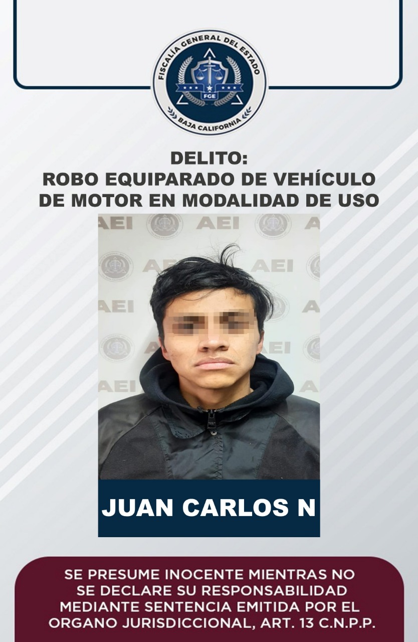 ENSENADA, B.C. La Fiscalía Regional de Ensenada obtuvo auto de vinculación a proceso contra un sujeto que fue capturado en cumplimiento de una orden de aprehensión por el delito de robo equiparado de vehículo de motor en la modalidad de uso de vehículo de motor robado.