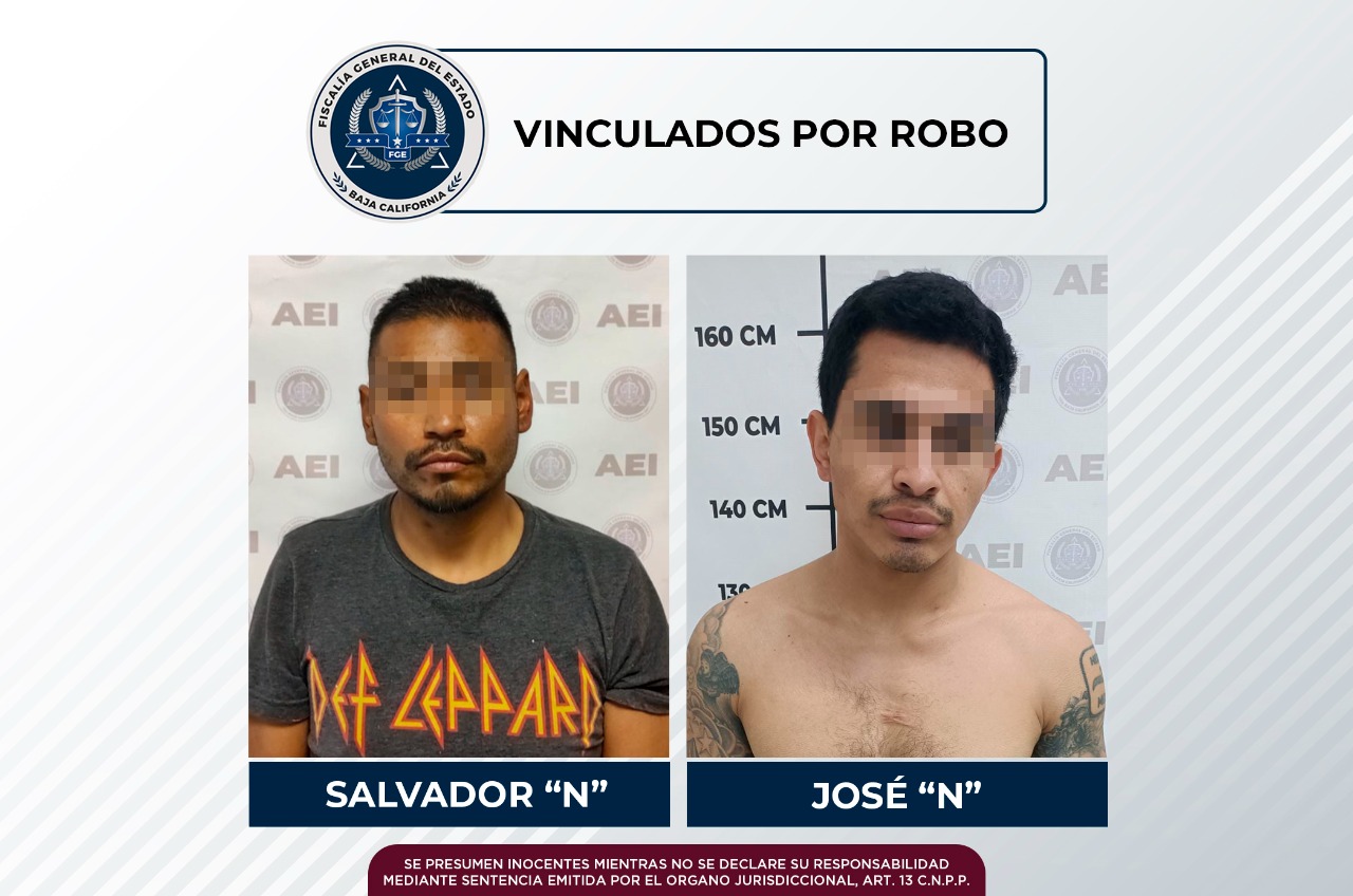 MEXICALI, B.C. La Fiscalía Regional de Mexicali, a través de la Unidad de Investigación Foránea de Guadalupe Victoria y la Unidad de Robos Poniente, logró con base a las pruebas y argumentos presentados, la vinculación a proceso de 2 hombres relacionados en los delitos de robo con violencia.
