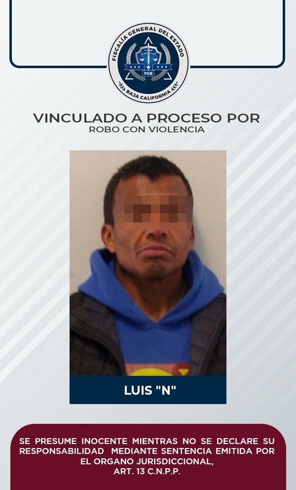 TECATE, B.C. 14 DE ENERO DE 2023.- La Fiscalía Regional de Tecate, mediante las pruebas y argumentos presentados por el agente del Ministerio Público, obtuvo la vinculación a proceso en contra de Luis Cristian "N", quien es probable responsable del delito de robo con violencia, hecho ocurrido a principios de mes en una panadería de este municipio.