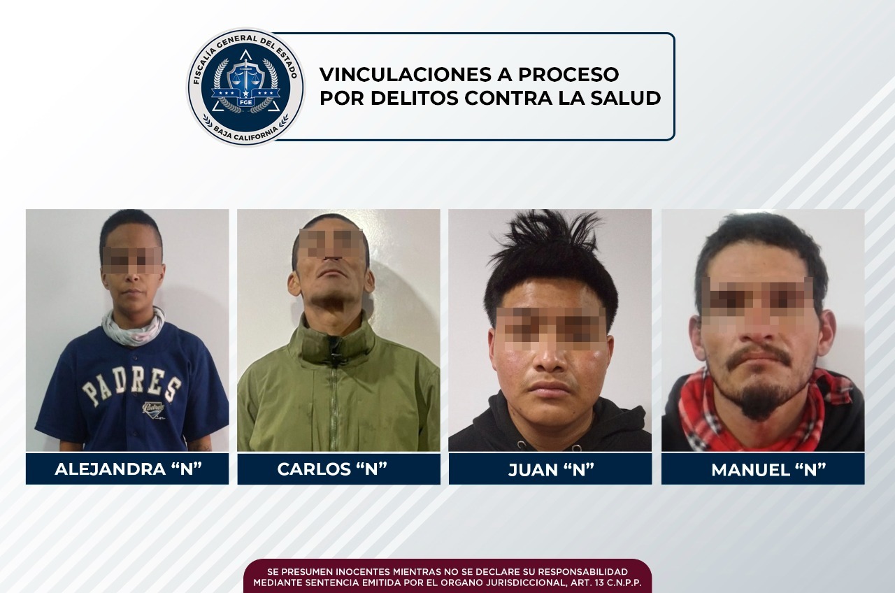 TIJUANA, B.C. La Fiscalía General del Estado establece acciones para la detención de vendedores de droga, e integra las carpetas de investigación, con la finalidad de llevar a los responsables ante la justicia, como en estos casos en que cuatro sujetos quedaron vinculados a proceso y en prisión preventiva.
