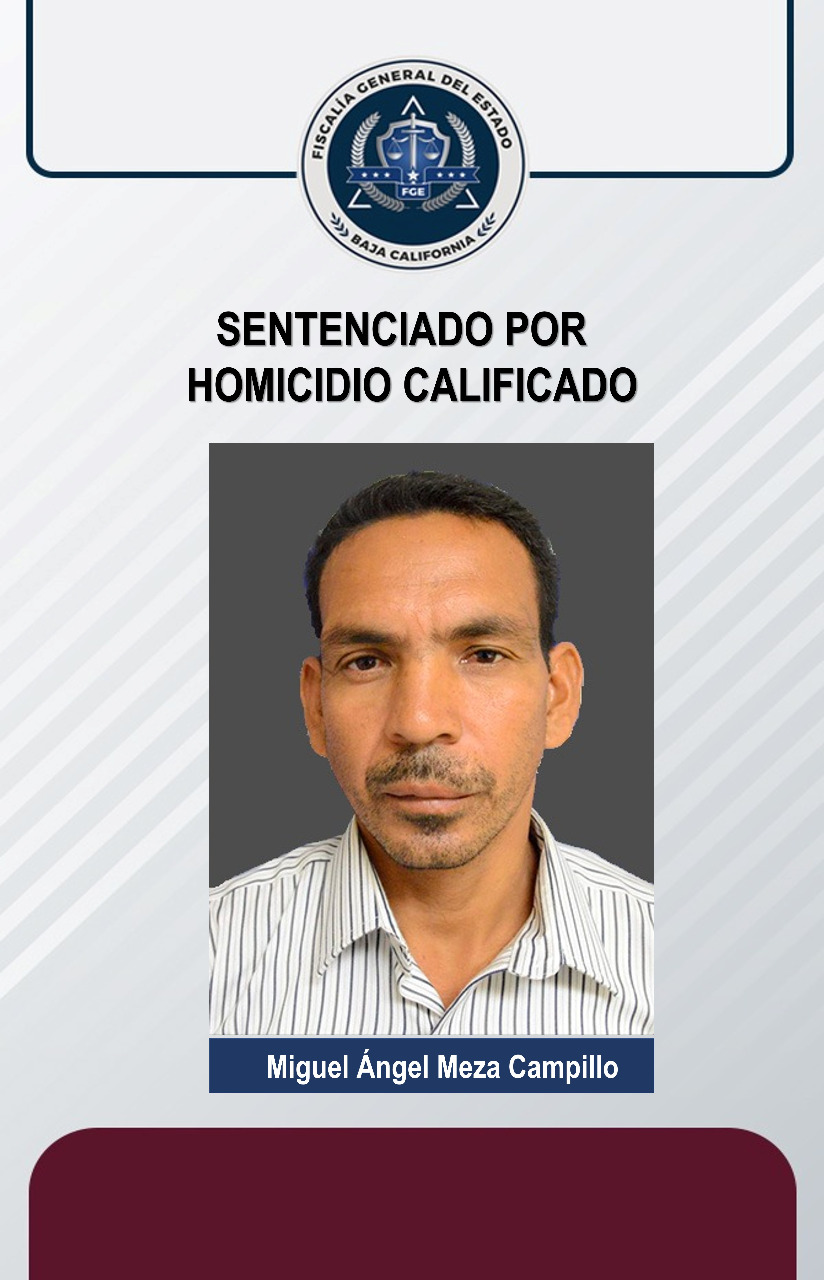 MEXICALI, B.C. La Fiscalía Regional de Mexicali a través de la Coordinación de Averiguaciones Previas y Control de Procesos, obtuvo una condena de 23 años de prisión en contra de Miguel Ángel Meza Campillo, por el delito de homicidio calificado con las agravantes de ventaja y alevosía.