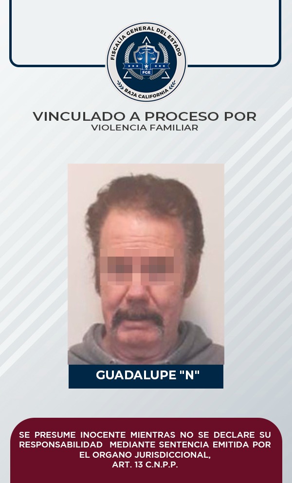 TECATE, B.C. Tras valorar un juez los datos de prueba presentados por el agente del Ministerio Público de la Fiscalía Regional de Tecate, se obtuvo la vinculación a proceso en contra de Guadalupe “N”, acusado de los delitos de violencia familiar y lesiones.