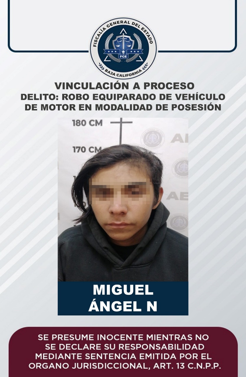 ENSENADA, B.C. La Fiscalía Regional de Ensenada, a través de datos de prueba expuestos por el Ministerio Público ante un Juez de Control, obtuvo la vinculación a proceso de un hombre por el delito de robo equiparado de vehículo de motor en modalidad de posesión de vehículo de motor robado.