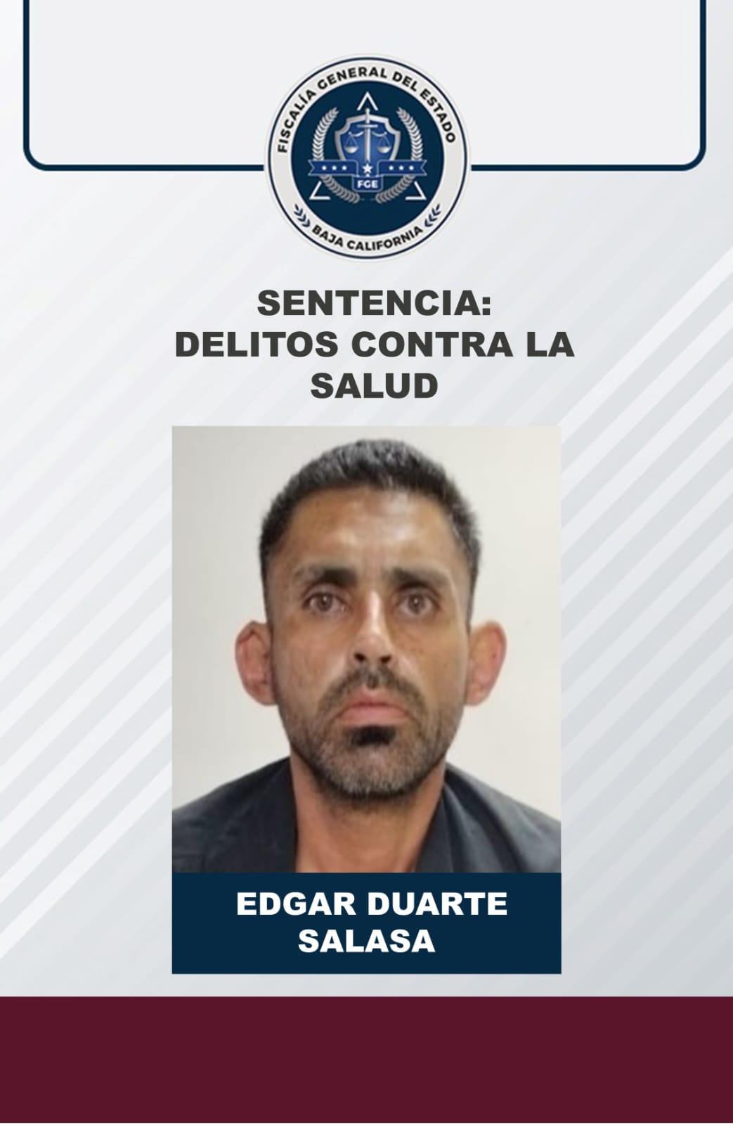 ENSENADA, B.C. Como resultado de las investigaciones y acciones penales que, la Fiscalía General de Baja California, ejerce contra quienes portan o comercializan drogas, se logró sentencia condenatoria para Edgar Duarte Salasa.
