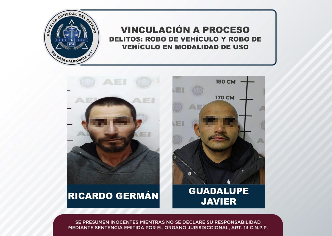 ENSENADA, B.C. La Fiscalía Regional de Ensenada, a través de datos de prueba expuestos por el Ministerio Público, en audiencias distintas, logró la vinculación a proceso de dos hombres por el delito de robo de vehículo.