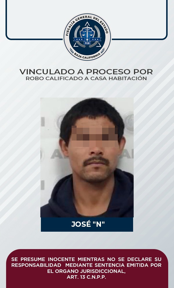 TECATE, B.C. El agente del Ministerio Público de la Fiscalía Regional de Tecate acreditó la probable participación de José Humberto “N” en el delito de robo calificado a casa habitación, logrando que un Juez de Control dictara auto de vinculación a proceso en su contra.