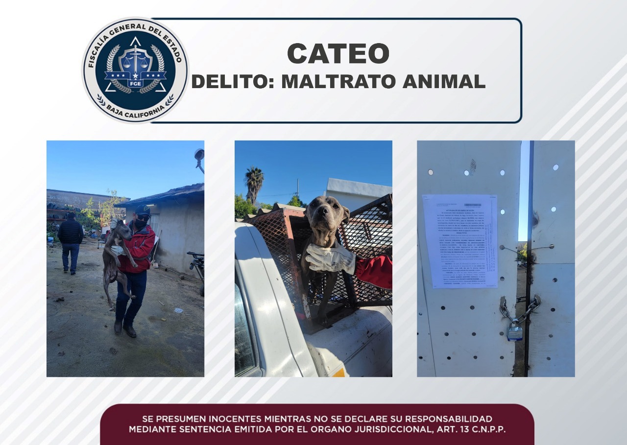 ENSENADA, B.C. La Fiscalía General del Estado rescató a un can, tras ejecutar una orden de cateo por el delito de maltrato animal, en un domicilio del municipio de Ensenada.