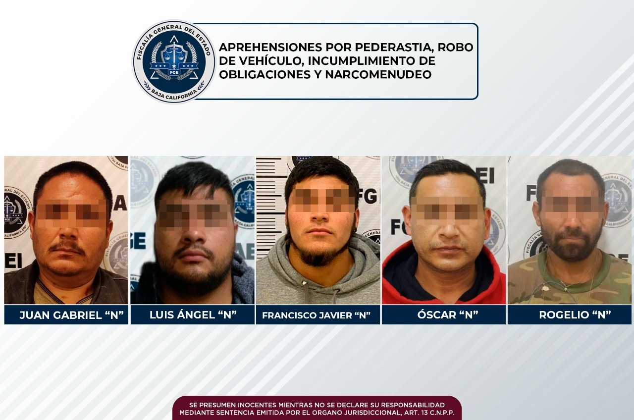 TIJUANA, B.C. 20 DE ENERO DE 2023.- Agentes de la Fiscalía General del Estado cumplimentaron cinco órdenes de aprehensión, en contra de igual número de imputados que eran requeridos por jueces de control en casos y delitos diversos.