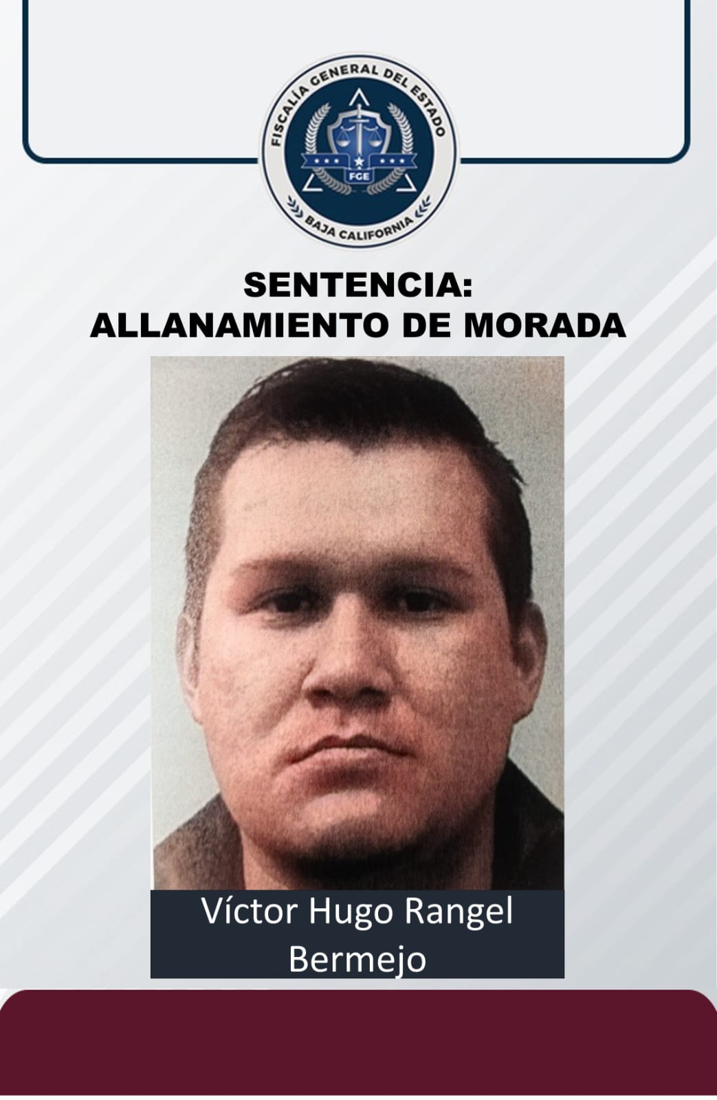 SAN QUINTÍN, B.C. La Fiscalía Regional de San Quintín obtuvo una sentencia condenatoria de 6 meses de prisión contra Víctor Hugo Rangel Bermejo, por el delito de allanamiento de morada, cometido en el poblado Francisco Villa.