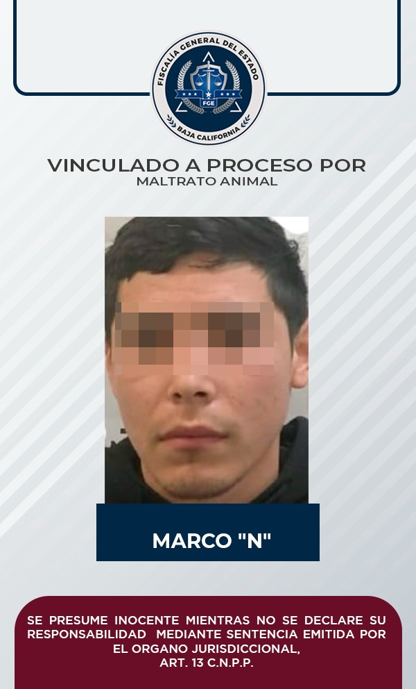 TIJUANA, B.C. La Fiscalía General del Estado (FGE) a través del Ministerio Público, acreditó mediante diversos datos de prueba, la probable participación de Marco “N” en el delito de maltrato animal, por lo que fue vinculado a proceso.