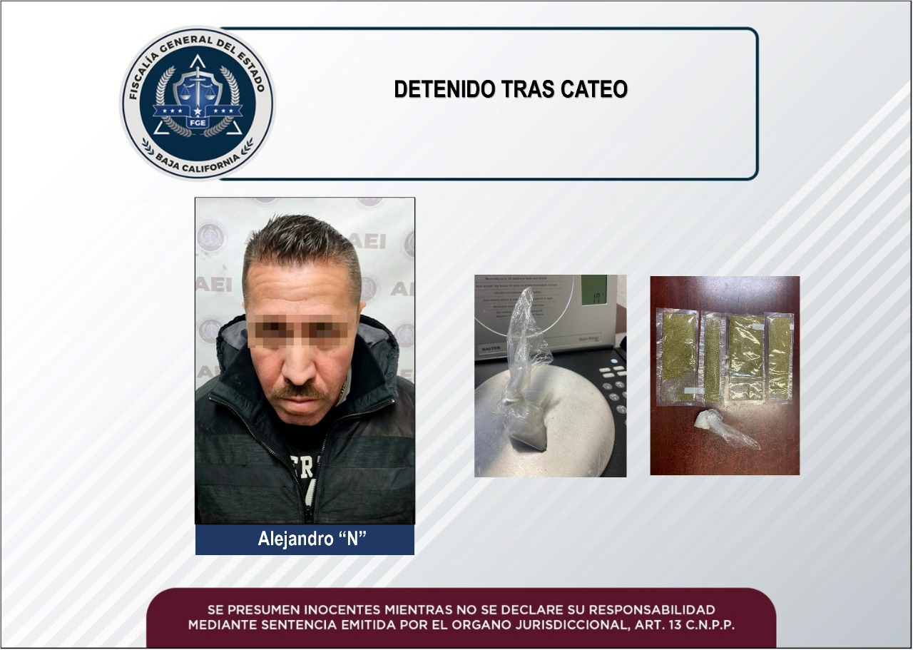 En el predio se encontró una bolsa de plástico cerrado con un nudo conteniendo al parecer de la droga sintética denominada metanfetamina, y se detuvo a Alejandro “N” de 47 años, quien será investigado por delitos contra la salud.