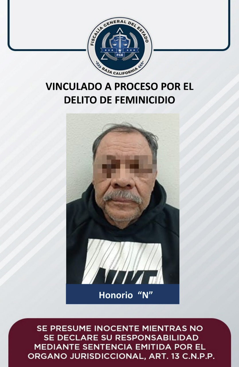 MEXICALI, B.C. La Fiscalía General del Estado a través de la Fiscalía Especializada en Delitos contra la Vida, obtuvo auto de vinculación a proceso contra un adulto mayor por el delito de feminicidio.