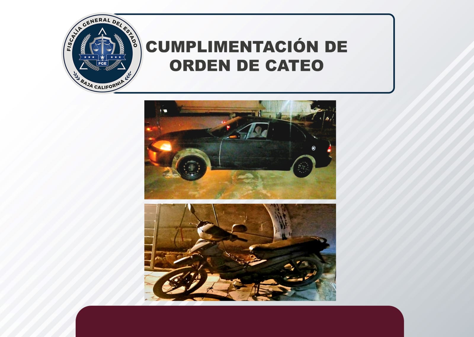 ENSENADA, B.C. La Fiscalía General del Estado (FGE), aseguró un auto que contaba con reporte de robo, al ejecutar una orden de cateo a un domicilio en el fraccionamiento Mar, en Ensenada.