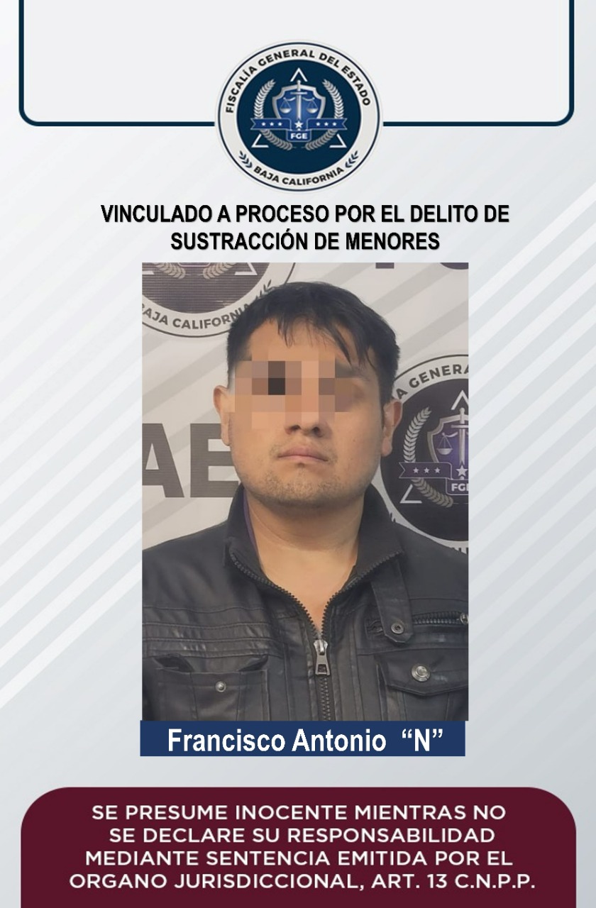 MEXICALI, B.C. La Fiscalía General del Estado, a través de la Unidad de Investigación y Persecución de Delitos de Desaparición Forzada de Personas y Cometidas por Particulares obtuvo la vinculación a proceso de Francisco Antonio “N”, por el delito de sustracción de menores.