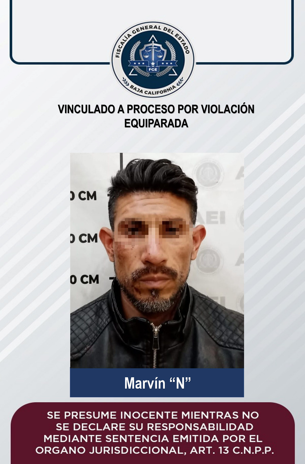 MEXICALI, B.C. La Fiscalía General del Estado (FGE), en el firme ejercicio de la justicia para no dejar impunes actos de violencia en contra de las mujeres, niñas, niños y personas vulnerables, logró vincular a proceso a un sujeto por el delito de violación equiparada.