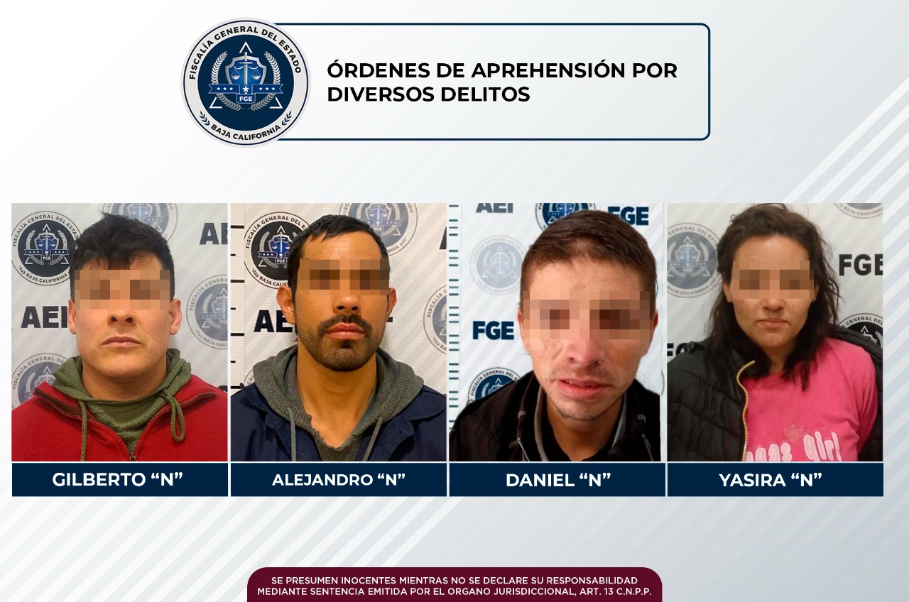 TIJUANA, B.C. Cuatro personas que intentaban evadir la justicia fueron aprehendidas por elementos de la Agencia Estatal de Investigación, quienes mediante diversas labores de inteligencia lograron cumplimentar los mandamientos judiciales el pasado 26 de enero en diferentes colonias de la ciudad de Tijuana.