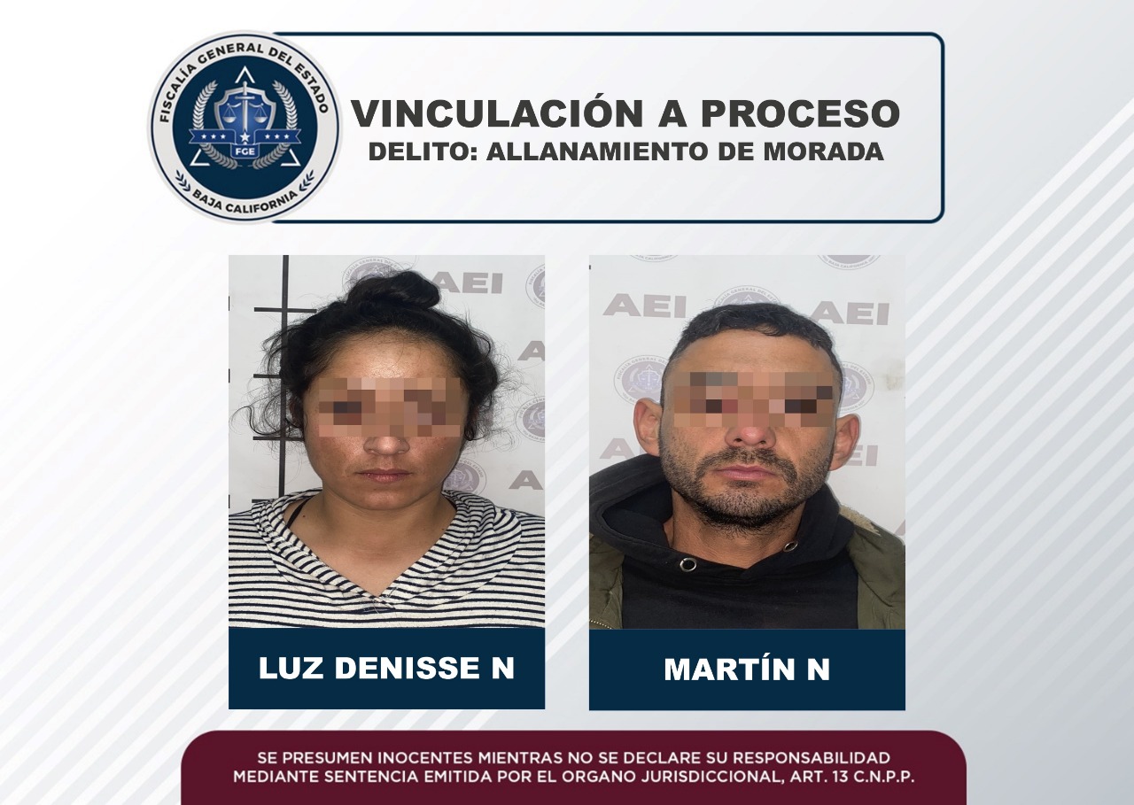 ENSENADA, B.C. Un hombre y una mujer quedaron vinculados a proceso por el delito de allanamiento de morada, luego de ser sorprendidos dentro de un inmueble asegurado, informó la Fiscalía Regional de Ensenada.