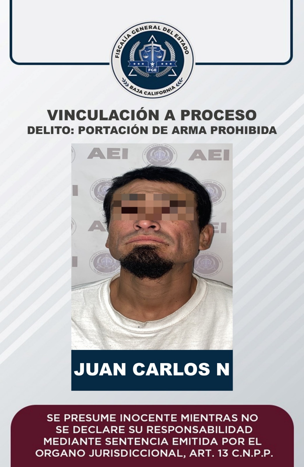 De la carpeta de investigación por el delito de portación de arma prohibida, se informó que Juan Carlos “N” fue detenido el 23 de enero en la colonia Jalisco.