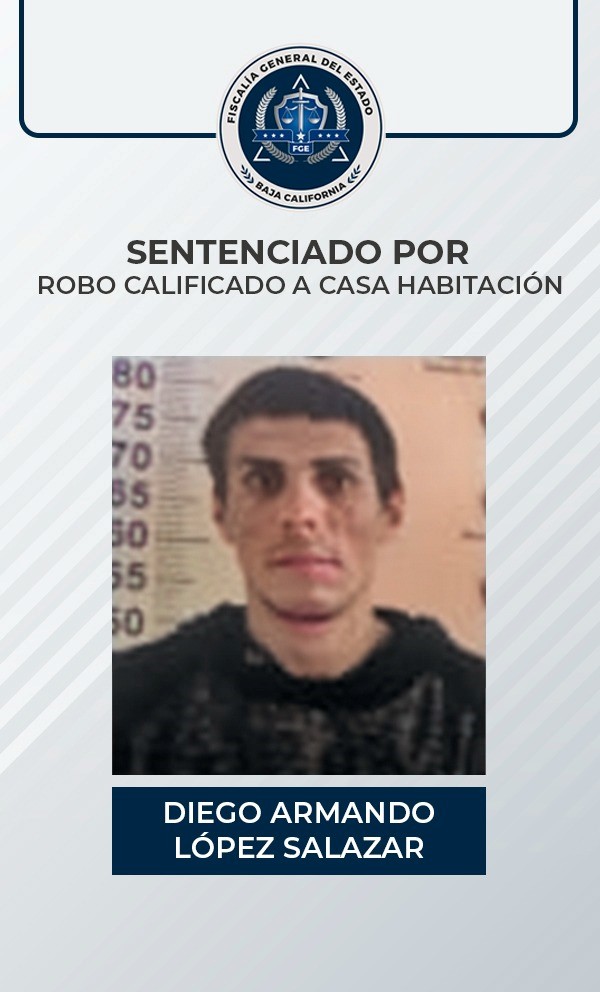 PLAYAS DE ROSARITO, B.C. La Fiscalía Regional de Playas de Rosarito, informa que tras llevarse a cabo un procedimiento abreviado, se obtuvo una sentencia por robo calificado a casa habitación.