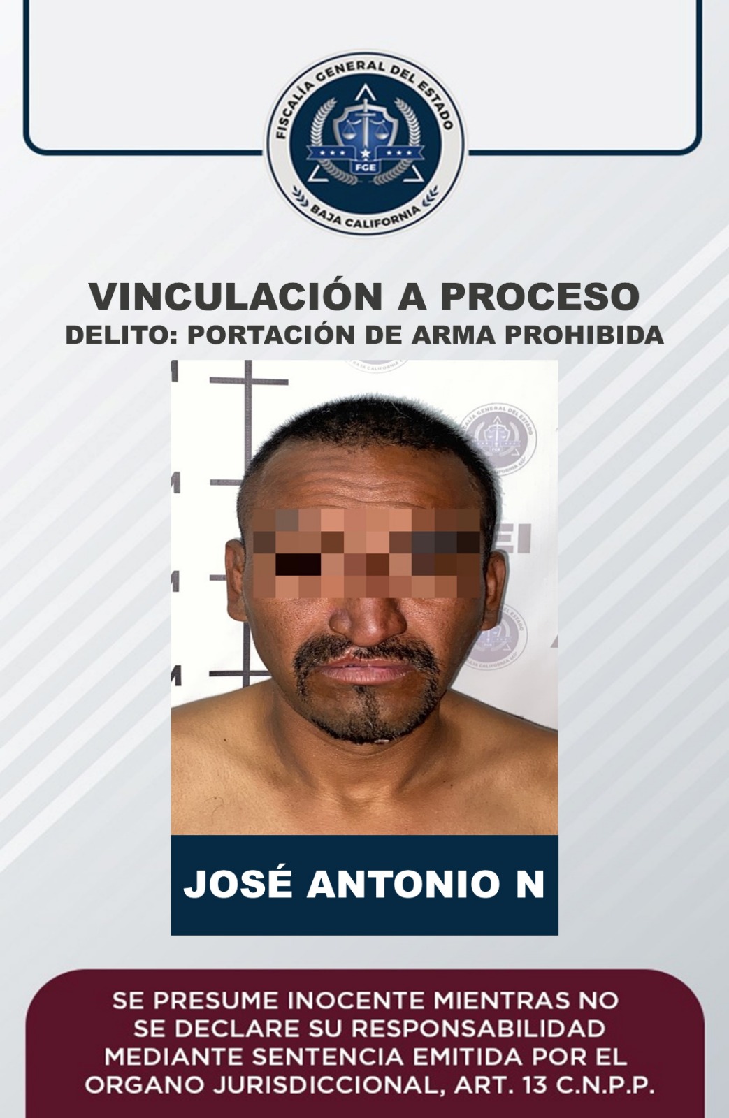 ENSENADA, B.C. 30 DE ENERO DE 2023.- La Fiscalía Regional de Ensenada, a través de datos de prueba, obtuvo la vinculación a proceso de José Antonio “N”, quien fue detenido en días recientes por el delito de portación de arma prohibida.