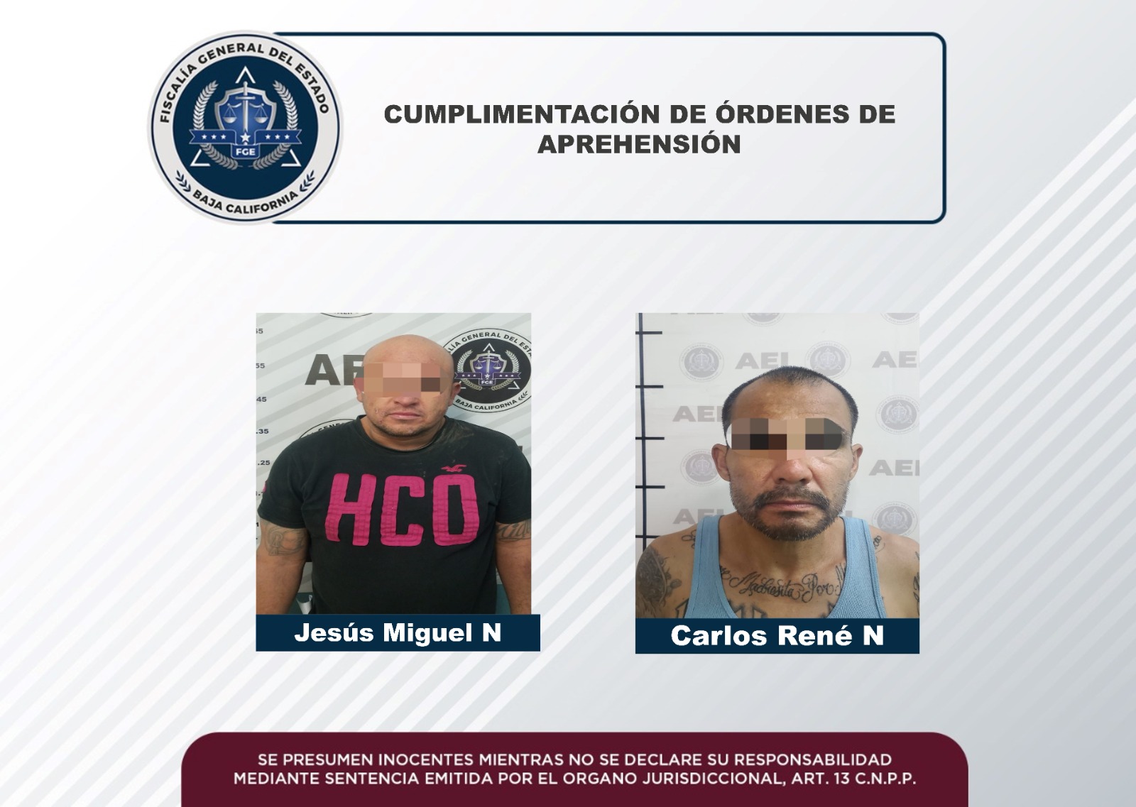 MEXICALI, B.C. Agentes estatales de investigación adscritos a la Fiscalía Regional de Mexicali, cumplimentaron orden de aprehensión en contra de dos hombres por presuntamente cometer el delito de robo calificado a casa habitación.