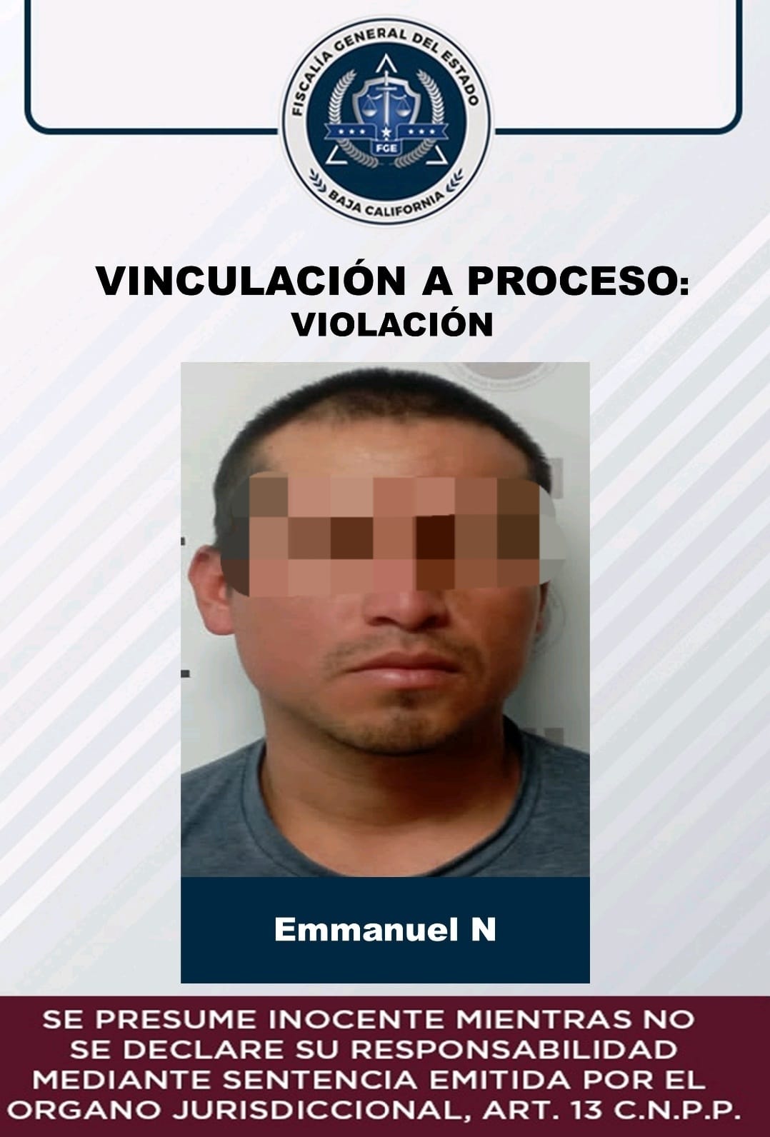 SAN QUINTÍN, B.C. La Fiscalía General del Estado (FGE), logró auto de vinculación a proceso penal en contra de Emmanuel “N”, quien presuntamente, cometió el delito de violación en agravio una mujer.